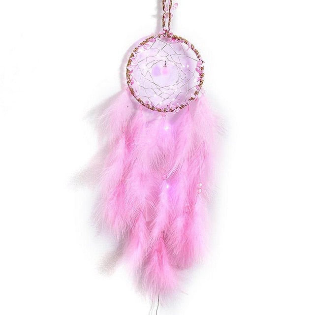Home Decoration Dream Catcher With Lights Feathers Hand-Woven Ornaments Birthday Graduation Gift Wall Hanging Decor For Car